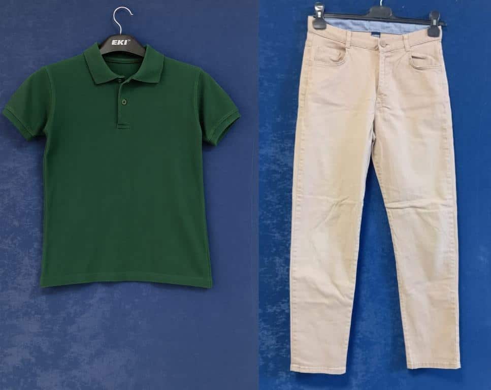 *Doğal ve sağlıklı kumaşlardan (pamuklu), polo yaka, kısa veya uzun kollu koyu yeşil renk tişört